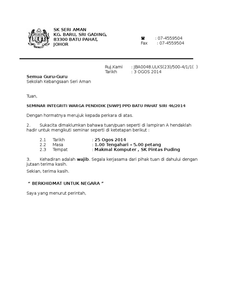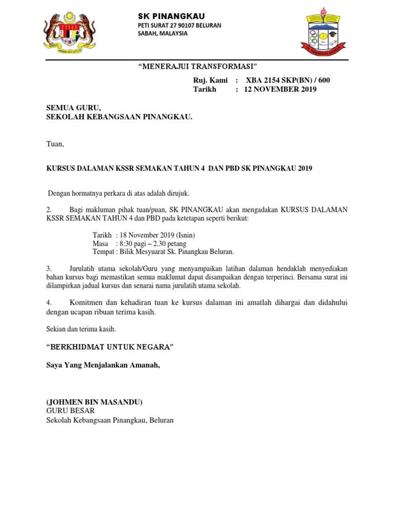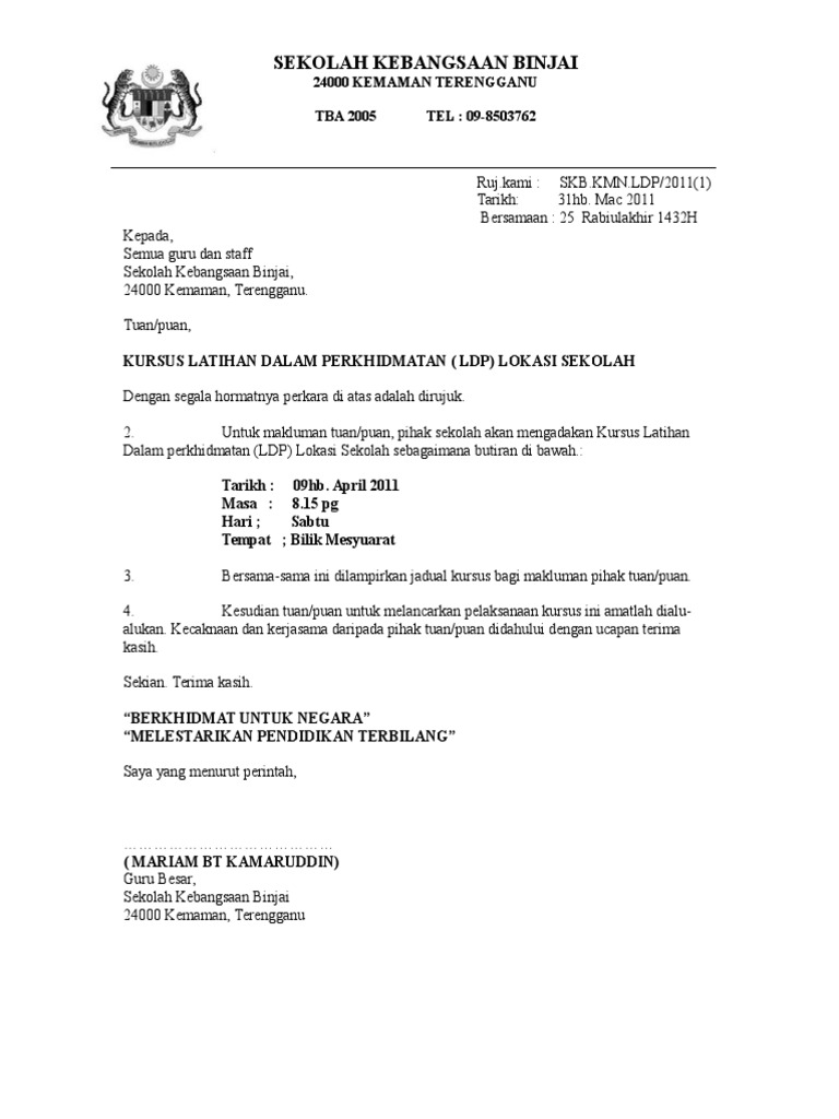 Surat Panggilan Taklimat Kursus Dalaman Pdf