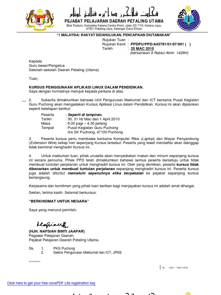 Surat Panggilan Kursus Linux Ppd Petaling Utama Pdf